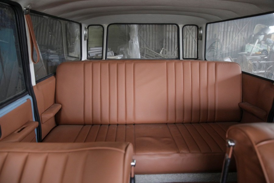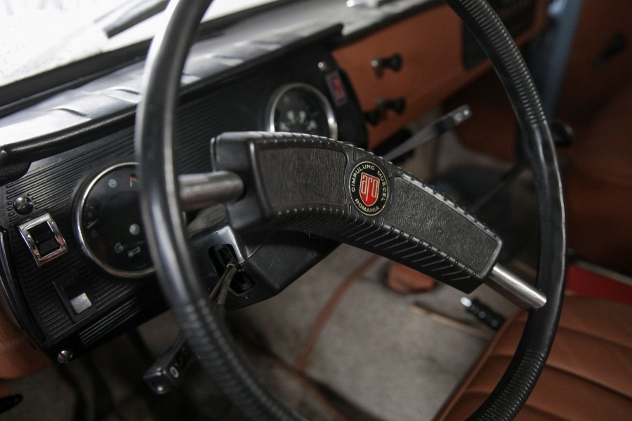Modrý automobil byl vyroben speciálně pro Ceaušeska v roce 1977 a má mimo jiné kožené sedačky.